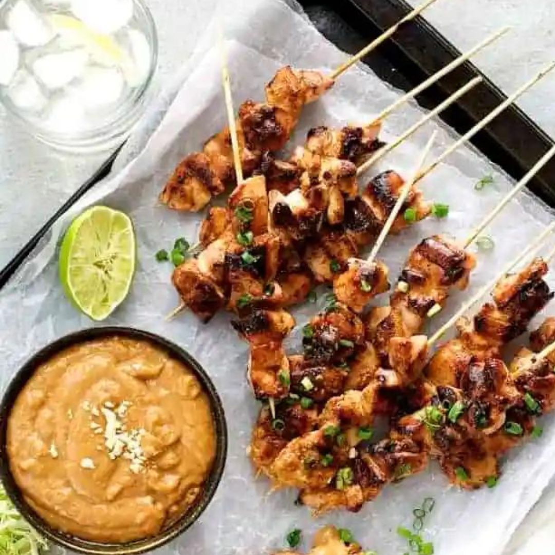 Ce plat consiste en de fines lamelles de poulet mises à mariner dans un mélange de gingembre, de curcuma, de citronnelle et d’huile. Puis, les brochettes sont cuites au charbon de bois et servies avec une sauce à base de cacahuètes et de lait de coco.