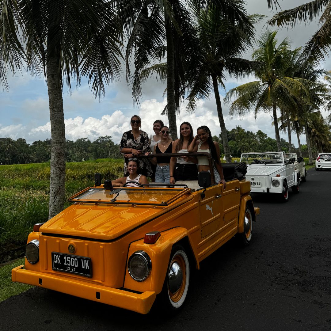 🔥 Activités incluses : Virée en décapotables Volkswagen, découverte de la forêt des singes de Sangeh et des rizières de Jatiluwih