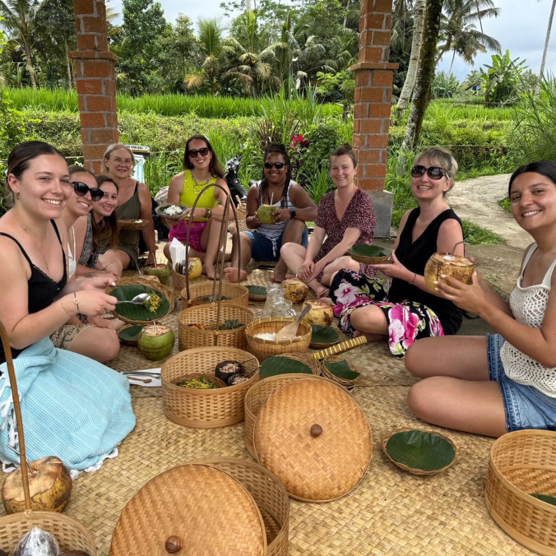 Après le déjeuner, place a la relaxation dans un beach club au milieu de la jungle avec vue sur les rizières.