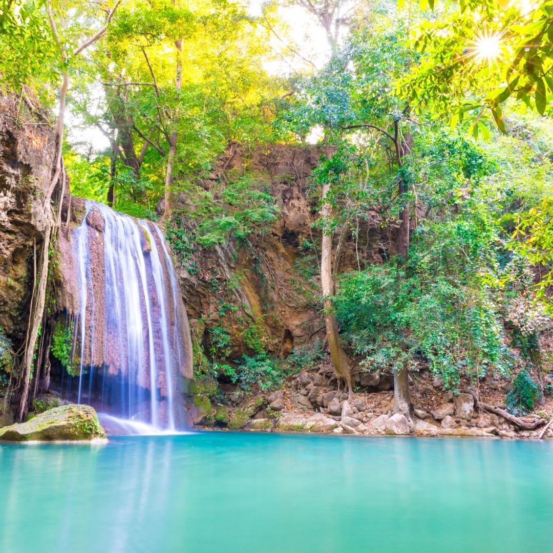 Explorez le parc national d’Erawan et ses cascades légendaires : nagez dans les bassins turquoise et laissez-vous émerveiller par cette nature luxuriante, notamment sa magnifique cascade à 7 niveaux.